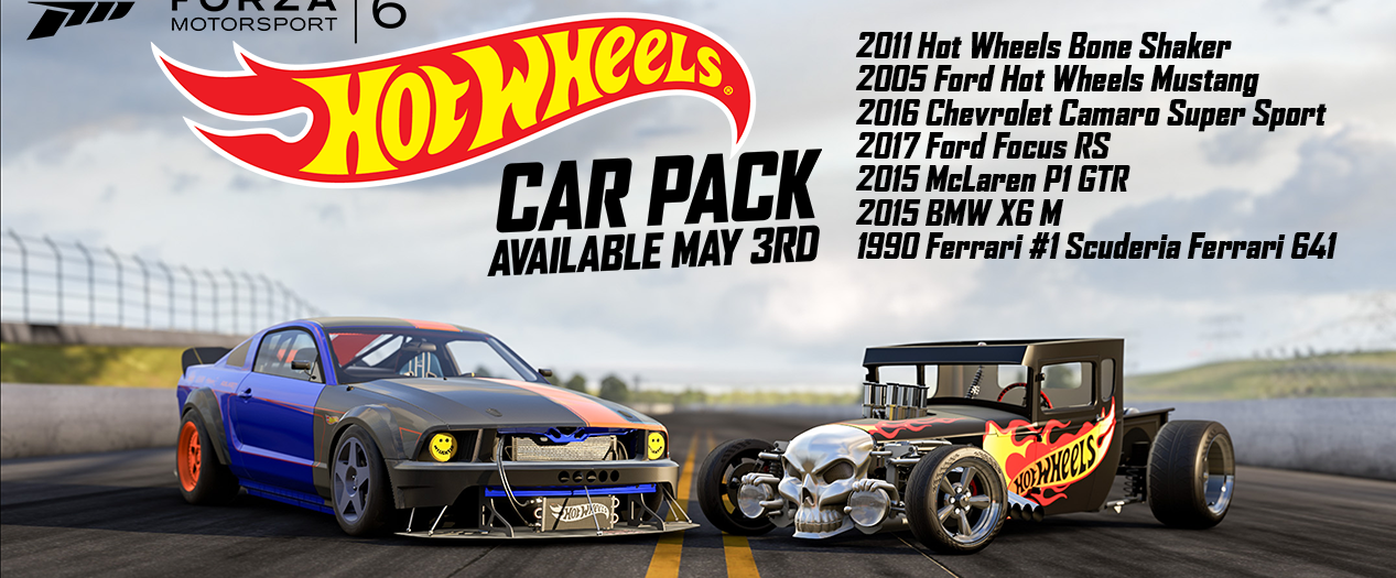 Partnerství mezi Microsoftem a Hot Wheels již bylo uzavřeno a dnes je stvrzeno prvním tématickým balíčkem. Hot Wheels Car Pack přináší hned dvě autíčka postavená na oblíbené značce, kdy hlavním tahákem je bezesporu 2011 Hot Wheels Bone Shaker doplněný o 2005 Ford Hot Wheels Mustang. Vaši pozornost si určitě zaslouží i novinkový 2017 Ford Focus RS a další auta z balíčku, kterými budou 2015 McLaren P1 GTR, 1990 Ferrari #1 Scuderia Ferrari 641, 2016 Chevrolet Camaro Super Sport a 2015 BMW X6M.