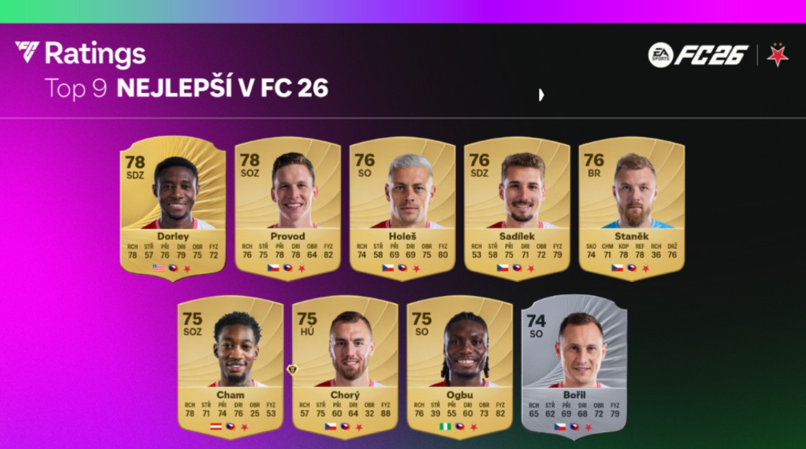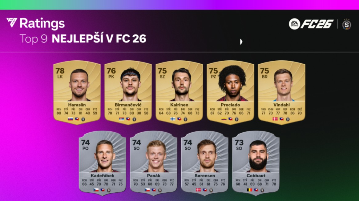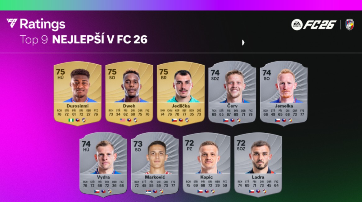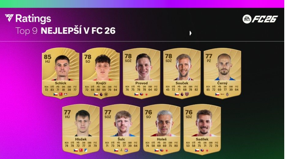 Díky TZ víme, kteří hráči z Česka jsou na to v chystané FC 26 nejlépe. Hra se nám už blíží, tak nezapomeňte na možnost vyzkoušet v předběžném přístupu pro členy EA PLAY nebo majitele Ultimate edice.