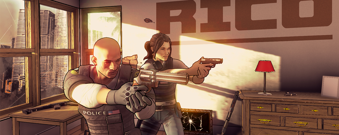 Chybí nám původní Rainbow Six, nový díl SWAT a nástupce Army of Two. A abychom nezapomněli, potřebujeme komiksovou stylizaci, která bude připomínat XIII, The Darkness II a Borderlands. Tak proč to všechno nehodit do mixeru a nezkusit výsledek prodat jako arkádovou taktickou střílečku se zaměřením na kooperaci. RICO (Racketeer Influenced and Corrupt Organizations) je projektem spolupráce studia Ground Shatter a vydavatelství Rising Start Games. I když jde v jádru o naprosto primitivní akci, kde moment překvapení tkví ve správně vykopnutých dveřích a rychlém prstu na spoušti, ukázka vypadá zábavně.