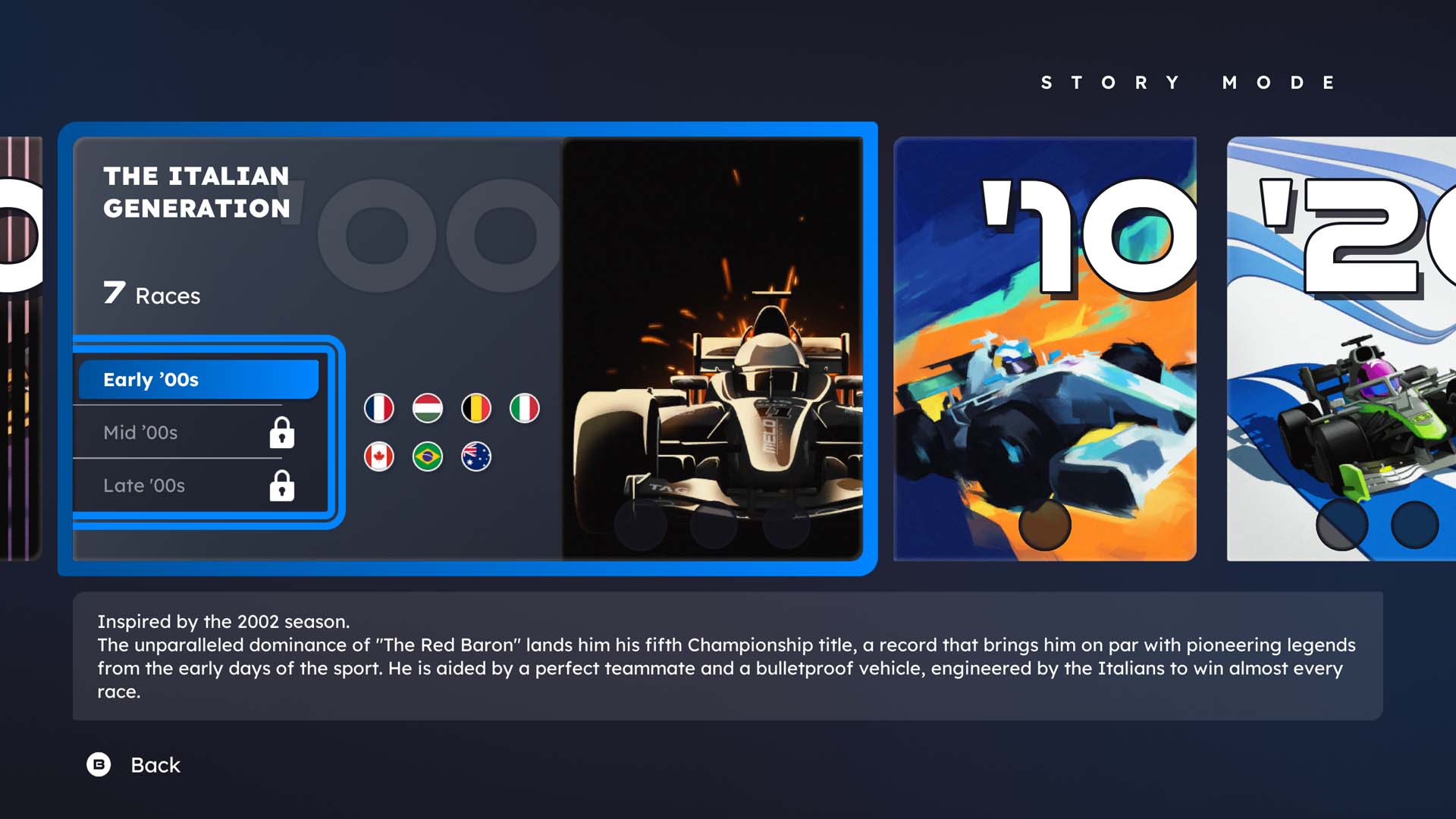 Největší tahák hry je jistě kariéra, do té vstoupíte v 60 létech. Na první dobrou vás hned zaujme vzhled tratí. Zapomeňte na apexi a další moderní vymoženosti. I přes kreslenou grafiku na vás dýchne historie. Bohužel z takového historického snění vás probere fakt, že hra není licencovaná a některé názvy nebo jména vám potahají koutky na ústech, třeba jako „Luis Hammerton“ nebo „Mike Shoemaker 😊. Já bych ještě pochopil tu moderní dobu, ale fakt nešlo poladit aspoň tu historickou dobu?