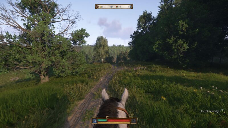 A když už jsem nakousl ty detaily, pojďme se rovnou podívat na grafickou stránku zdejších luhů a hájů. Jak se můžete přesvědčit z obrázků kolem, na hru je opravdu radost pohledět. Hrady, vesničky, louky a lesy jsou opět skoro až k neuvěření přesným odrazem naší krajiny, kterou denně procházíme. Jsou tu však drobné pihy na kráse, jako třeba 2D modely kytek, čehož si všimneme hlavně při jejich sběru nebo doskakování a doostřování textur buď při rychlé cvalu na koni nebo po rychlém cestování.