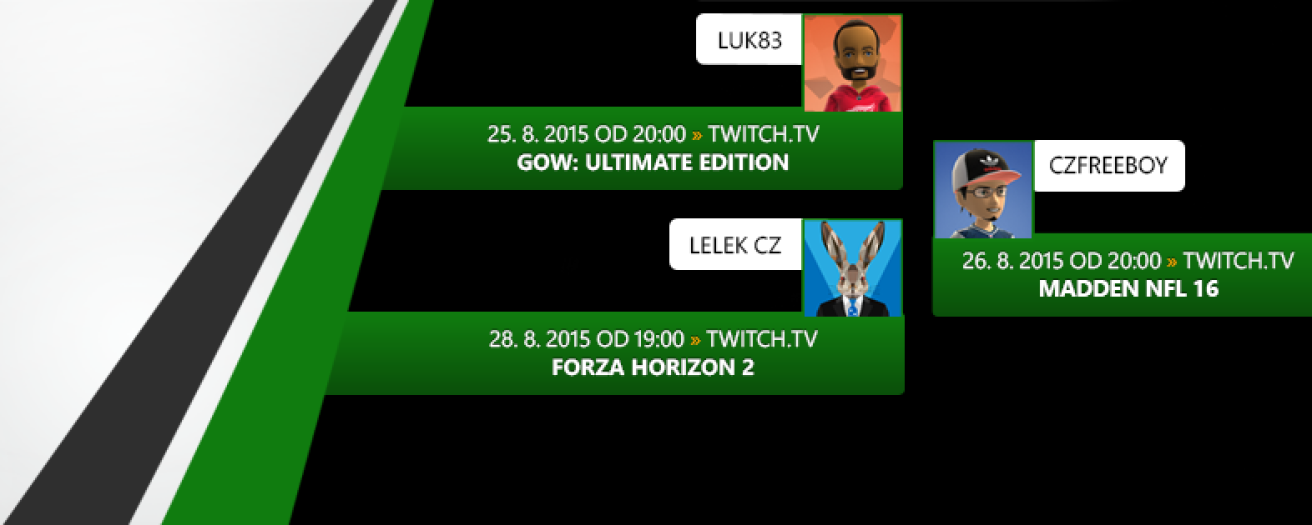 Máme za sebou další týden a před sebou poslední týden prázdnin. I přes prázdniny se vás snažíme bavit naším programem a jinak tomu nebude ani v tom posledním. Zahrajeme si novinky Gears of War: Ultimate Edition (recenze) a Madden NFL 16 (první pohled) a vše doplníme pozvánkou na Forzu 6 a jak jinak něž díky Forza Horizon 2.